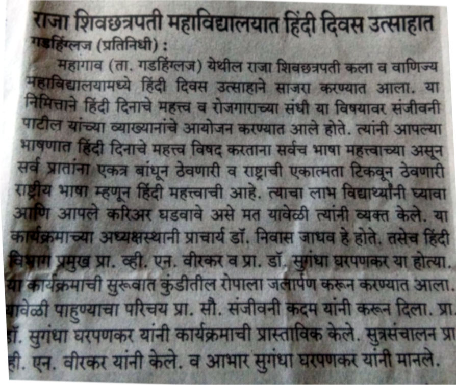Raja Shivchhatrapati Arts and Commerce College, Mahagaon
